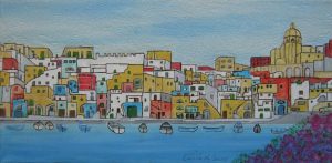 PROCIDA- LA CORRICELLA E’ un’opera originale, pezzo unico, firmata e certificata. Creazione assolutamente spontanea. Olio su tela da 40 x 20 x 2 Euro 150.00